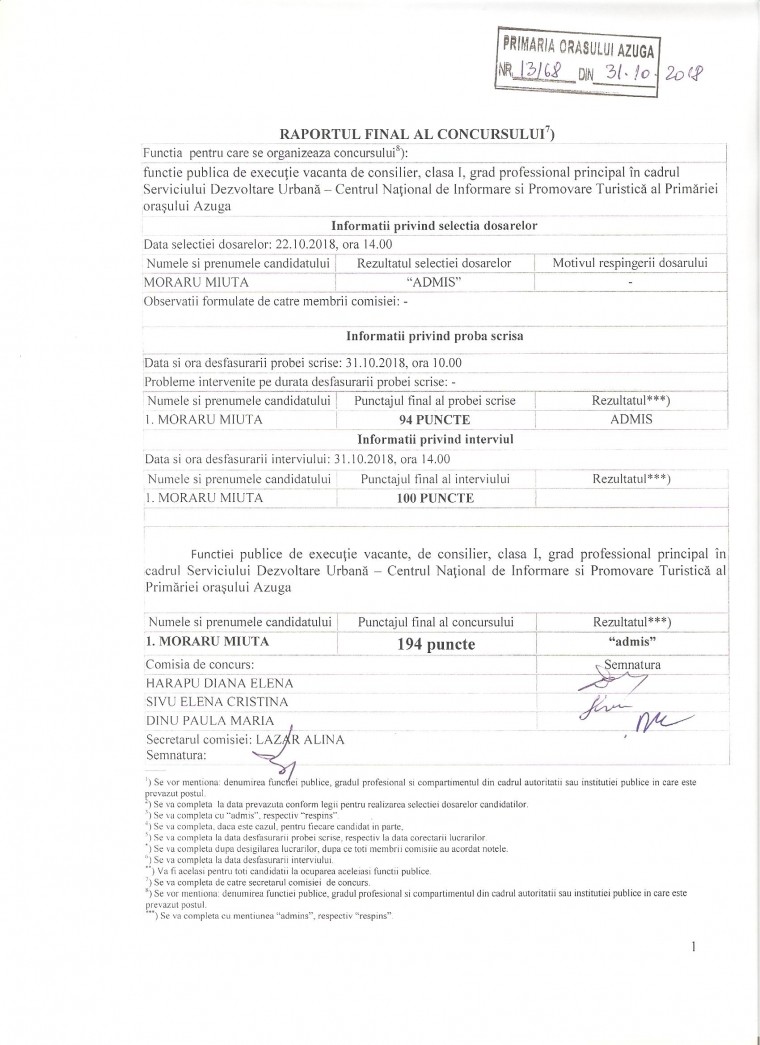 Anunt privind Infiintarea Centrului National de Informare si Promovare Turistica Azuga - Final proiect