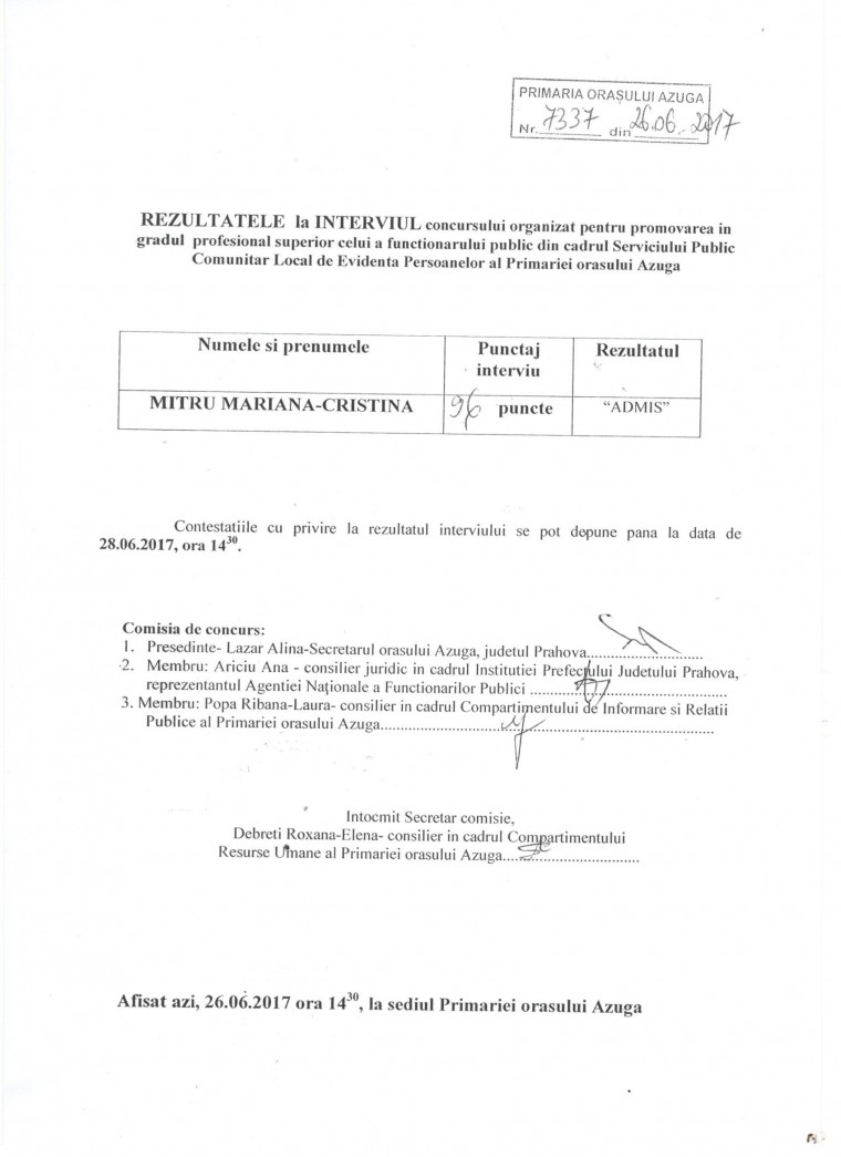 REZULTATE INTERVIU CONSILIER PROMOVARE GRAD SPCLEP
